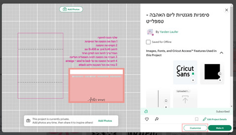 שימו ♥ בגלל שחלק מהקבצים של הפרויקט הם לא ישירות מdesign space הפרויקט יהיה עם צבעים חלקים ואת הסימניות יש להעלות את קובץ הPNG - הדרכה בהמשך